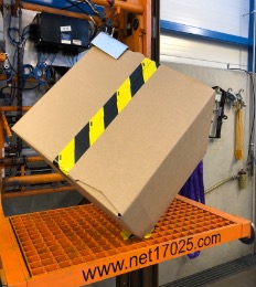 All typegodkjent emballasje gjennomgår en falltest. Høyde, vinkel og tilslagspunkt vil variere avhengig av hvilken type emballasje som skal testes. I NET gjennomføres fallprøvningen ved hjelp av et falltestapparat som er montert i et eget "tårn". Da vi bygde testcenteret på Eik, ble bygget konstruert slik at tilslagspunktet som emballasjen slippes mot ble forankret i grunden, mens selve bygget ble etablert på løsmasse. Dette ble gjort for å sikre at anslagsflaten skulle være i samsvar med ADR 6.1.5.3.4, samtidig som man ville sikre seg mot skader på selve bygget.