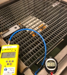 Emballasjen blir gjennom hele testen observert med en ekstern trykkmåler som kobles til emballasjen på et nøytralt punkt, dette sikrer at det ønskede trykket opprettholdes og avdekker et eventuelt avvik.
